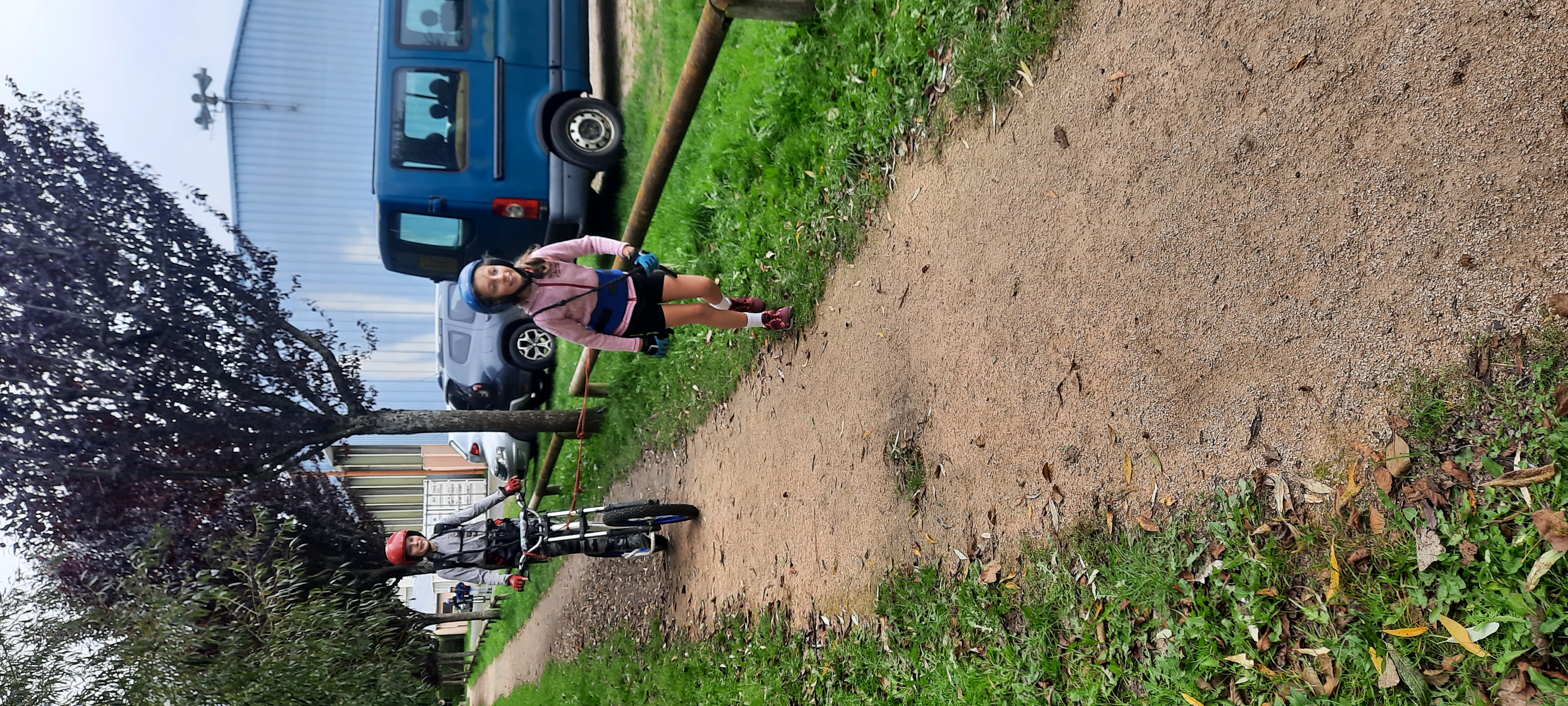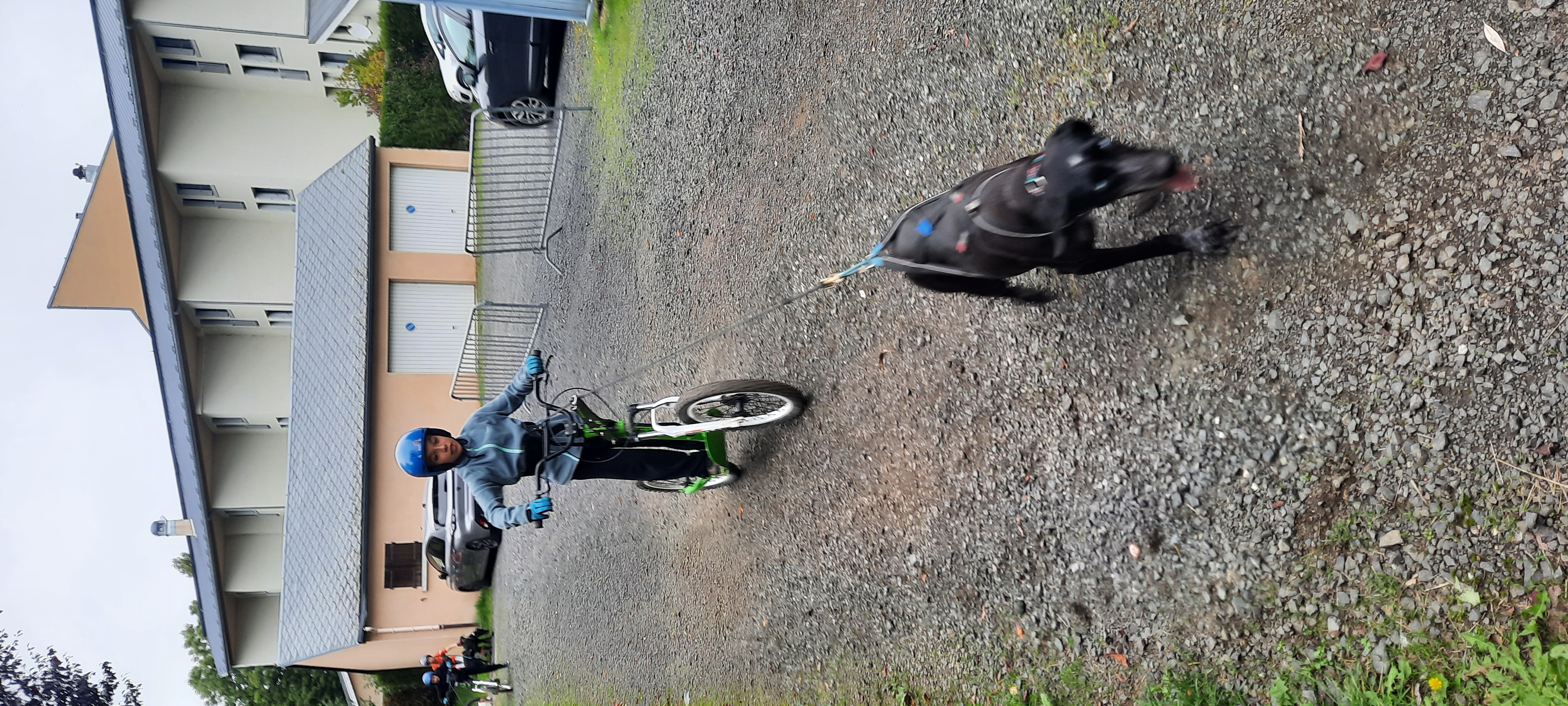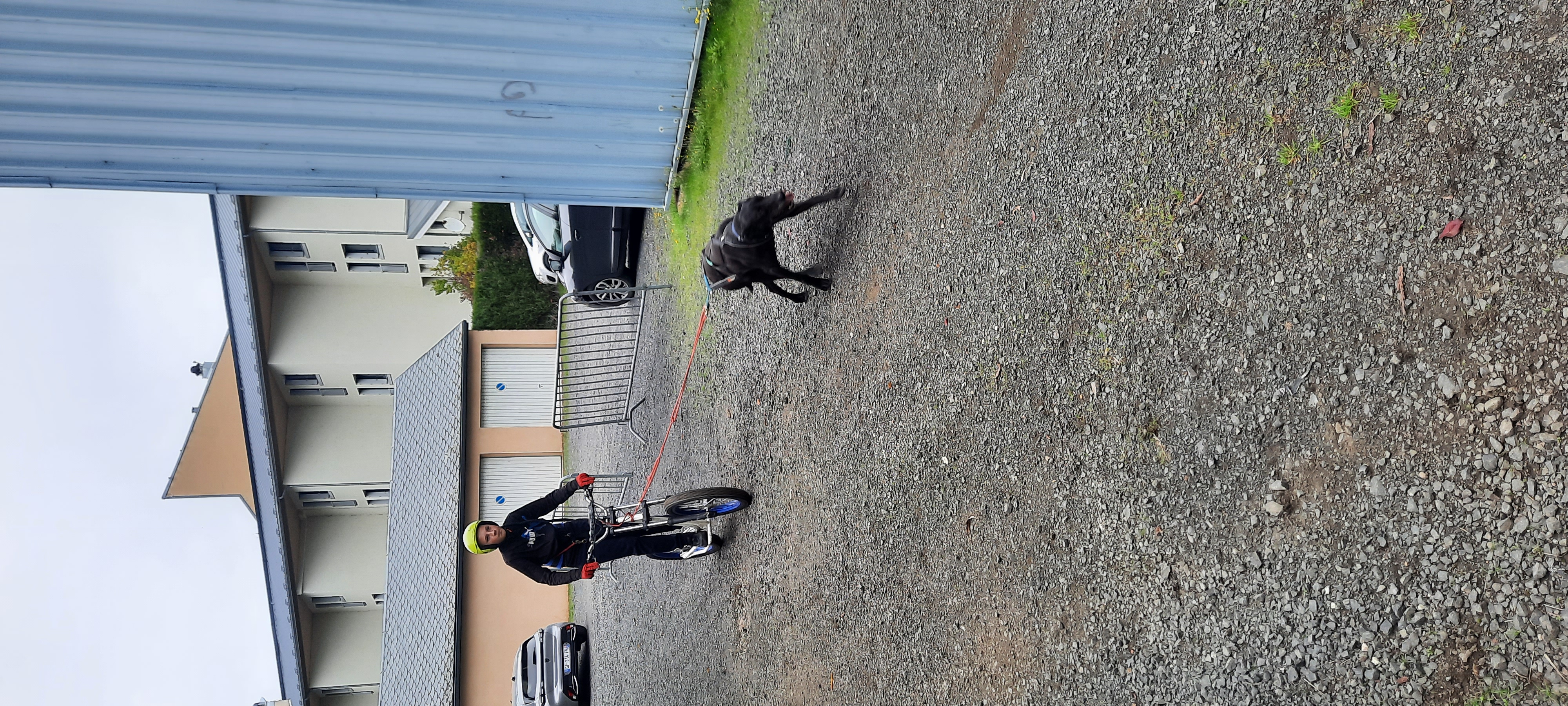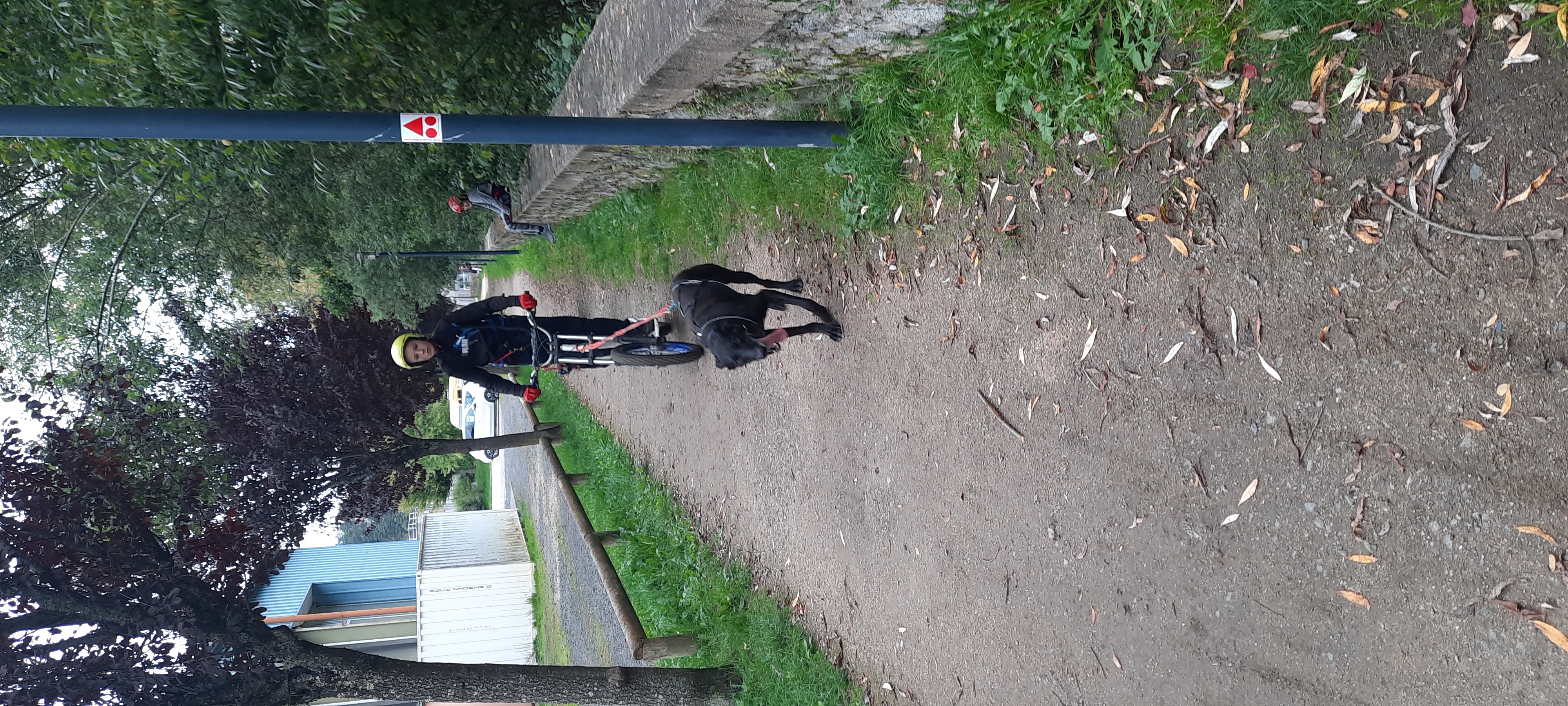 Dans un second temps, place à la pratique ! Les élèves ont pu tester la canitrottinette attelée avec nos fidèles compagnons à quatre pattes.