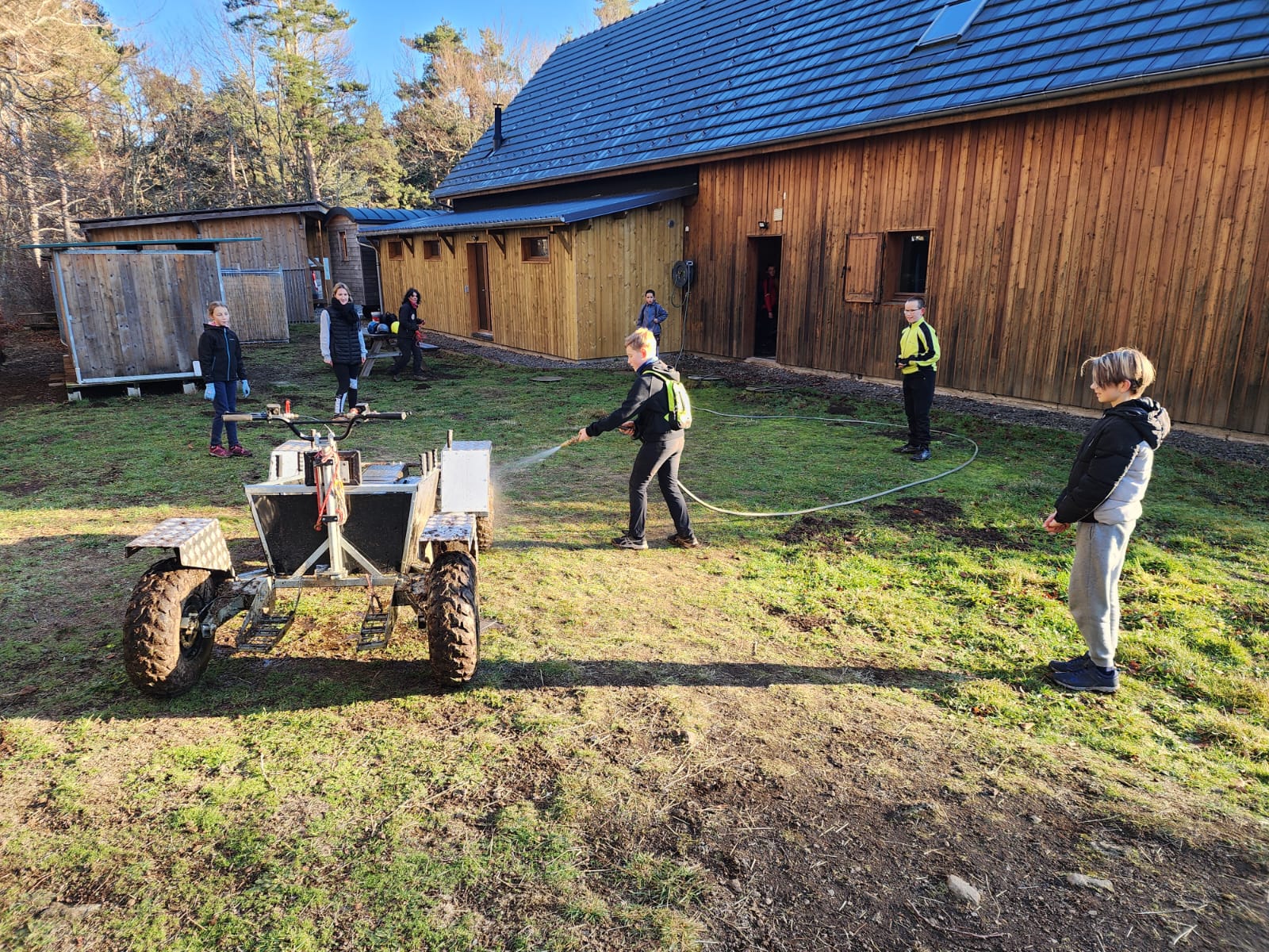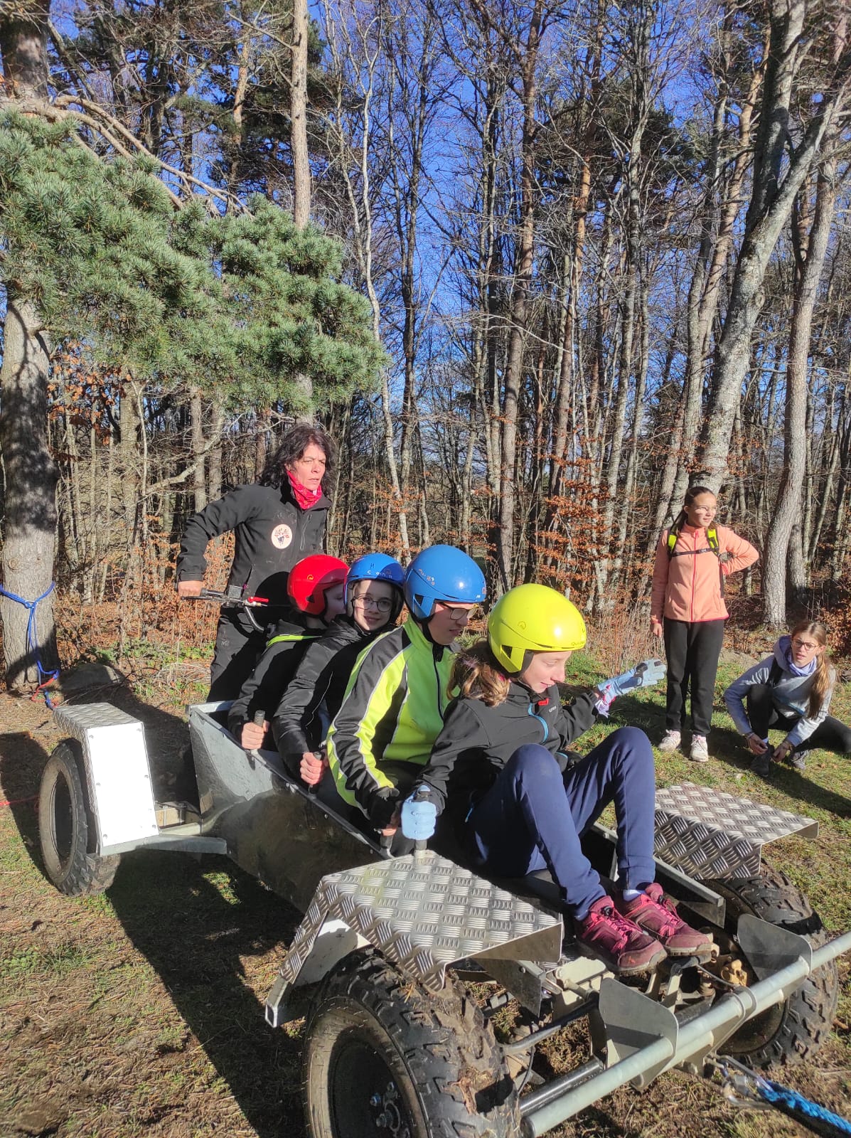 La journée a débuté par la visite du chenil, l’occasion pour tous d’en apprendre davantage sur la vie des chiens de traîneau, leur organisation et leur environnement. Les élèves ont ensuite découvert le canikart, un kart attelé à un impressionnant équipage de 12 chiens : frissons garantis dès les premiers mètres !