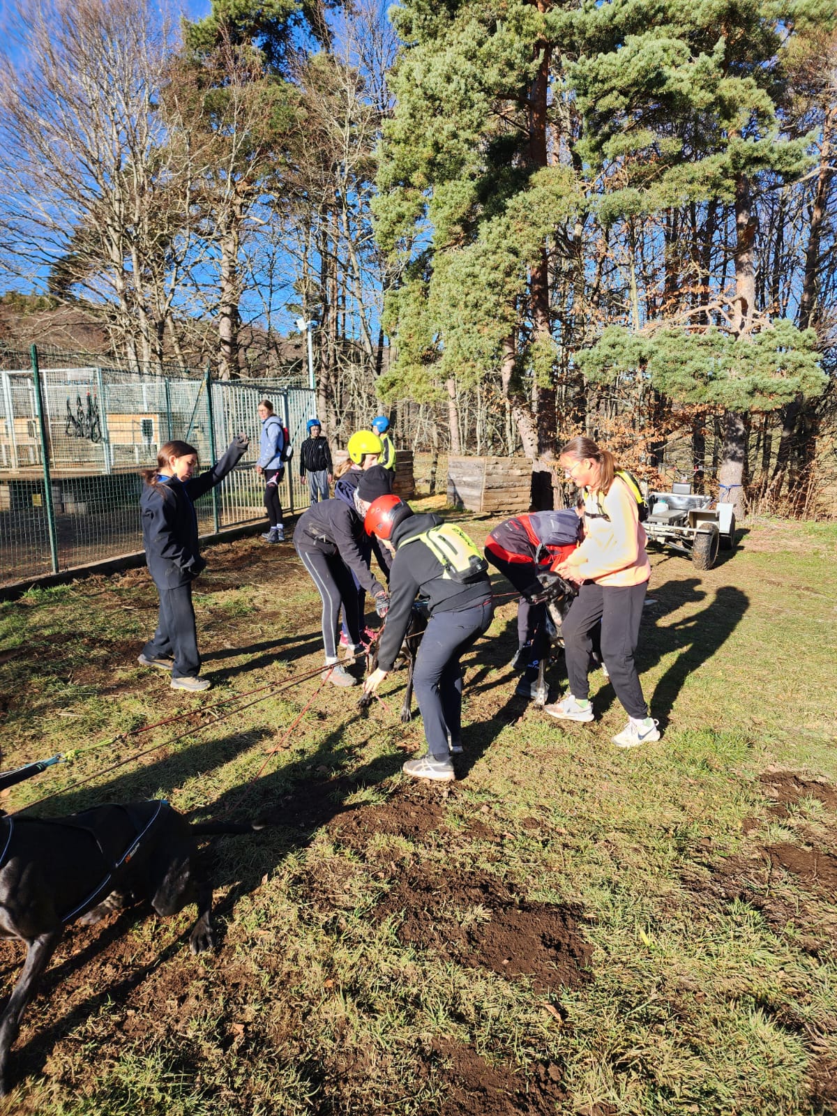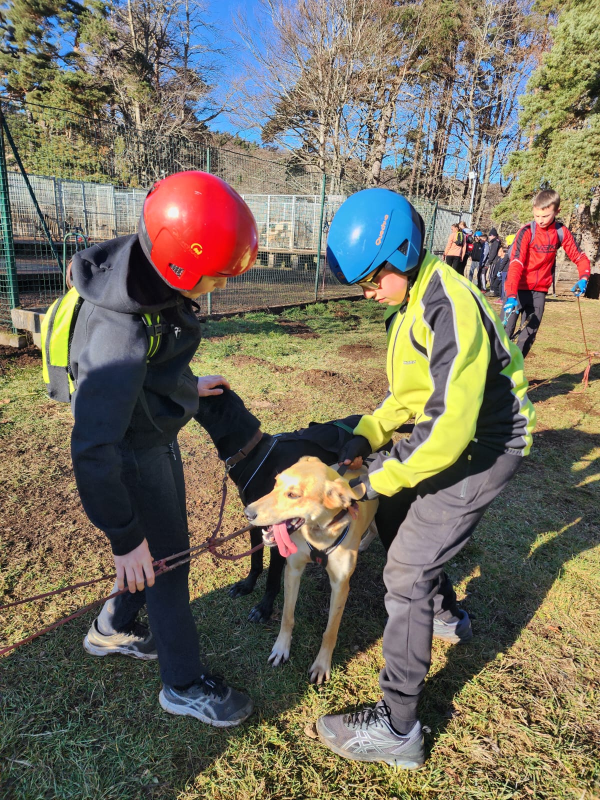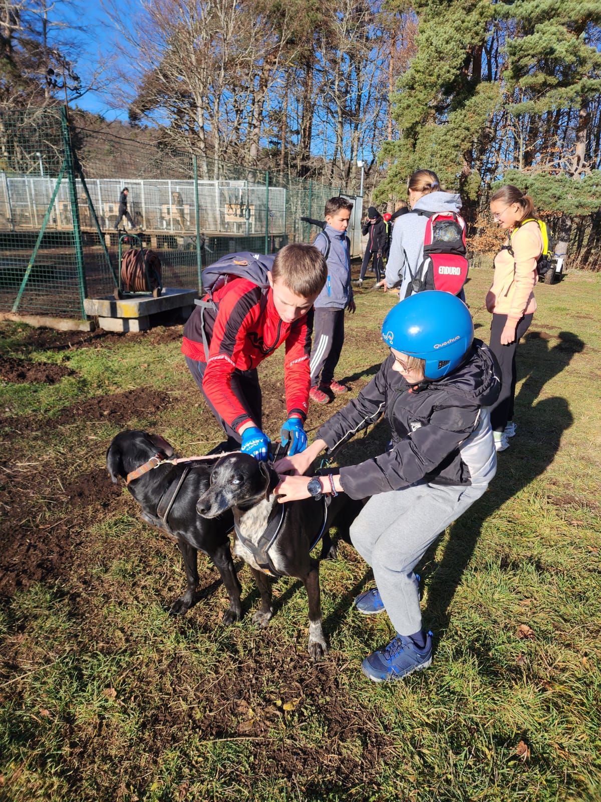 Après cette aventure sportive, place à l’observation et au soin des animaux : nettoyage et paillage des niches, découverte de leur lieu de vie, puis préparation d’un repas spécial pour chiens de course. Les collégiens se sont pris au jeu et ont mis la main à la pâte avec enthousiasme.